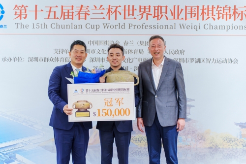 決賽結束后,中國圍棋協(xié)會和春蘭集團在深圳香格里拉大酒店隆重舉行了本屆“春蘭杯”頒獎儀式,春蘭(集團)公司高級副總裁徐群與中國圍棋協(xié)會主席常昊,中國圍棋協(xié)會名譽主席王汝南,分別為獲得本屆“春蘭杯”冠軍的中國棋手楊楷文九段,以及獲得亞軍的韓國棋手樸廷桓九段頒發(fā)了獎杯和獎金。